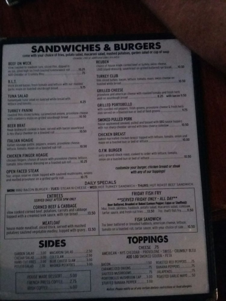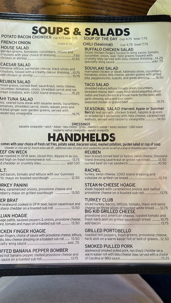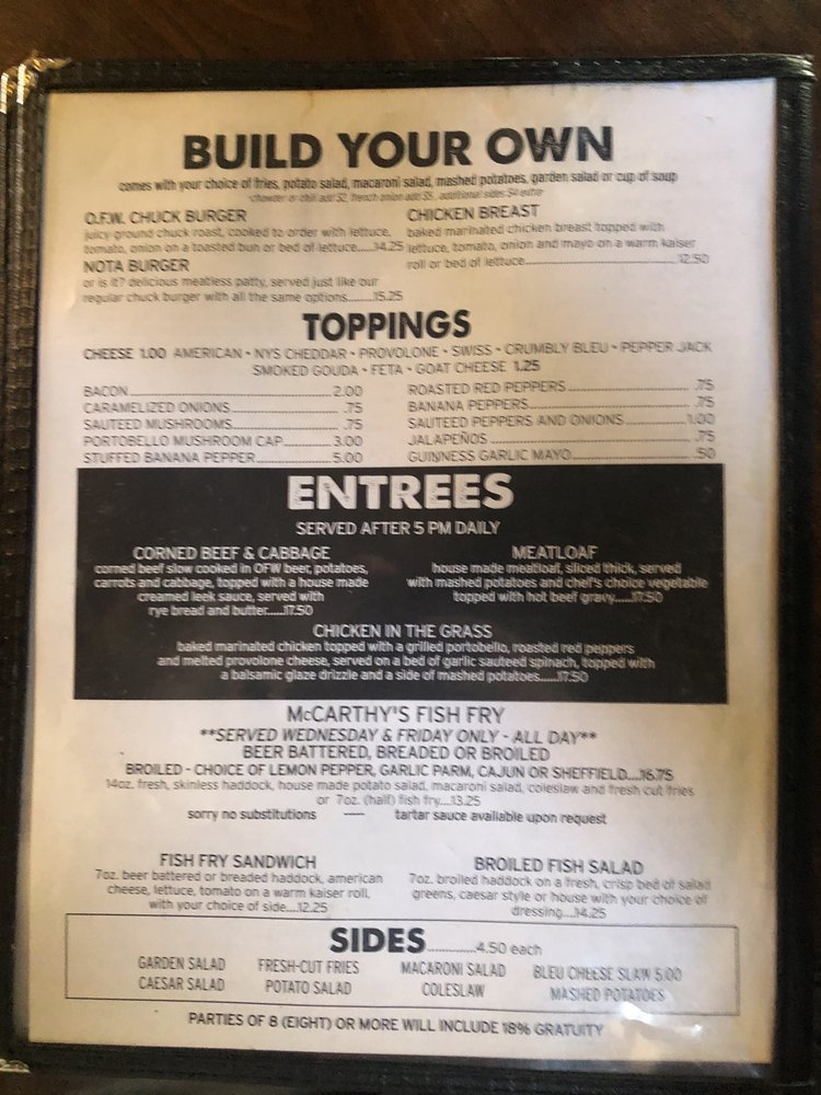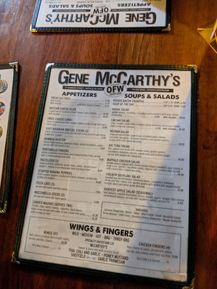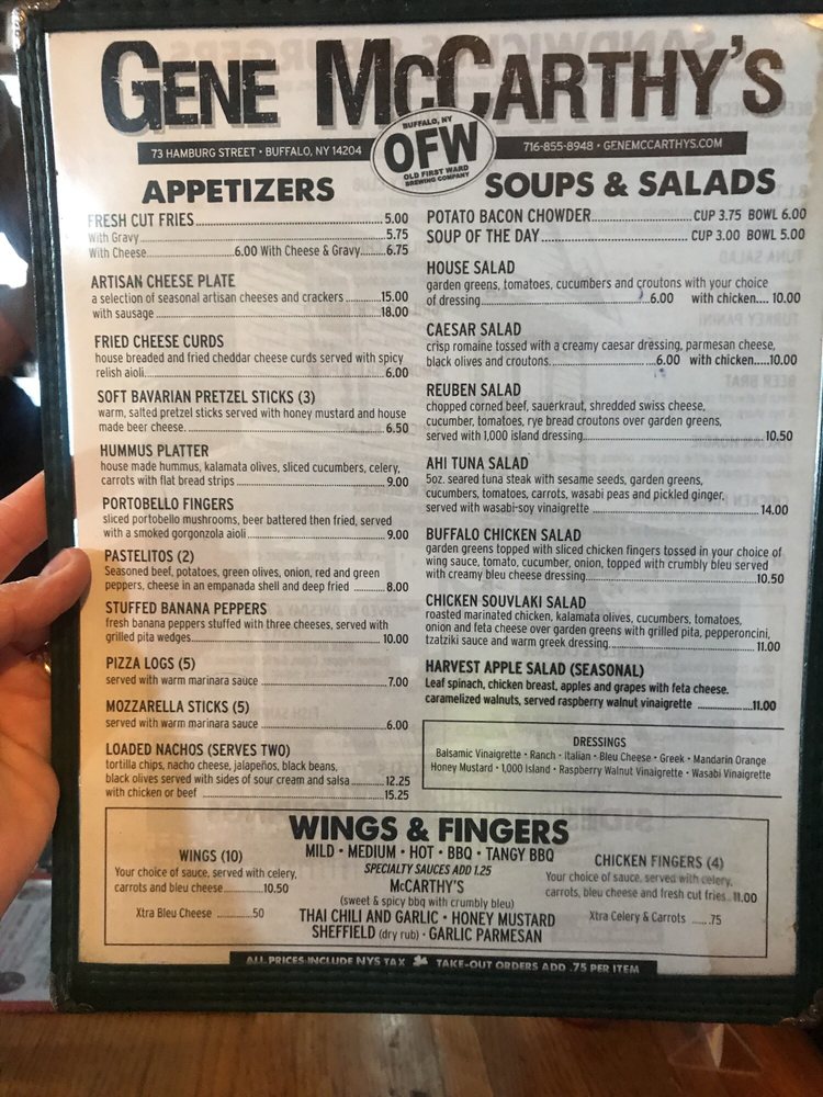 Gene McCarthy's, a beloved American brewery and pub located in Buffalo, NY, offers a cozy atmosphere with a diverse menu that includes many vegetarian options. Customers have praised the extensive kids' menu, delicious handhelds like the Rachel sandwich and beef on weck, and the excellent selection of house-brewed beers. The outdoor seating area is perfect for enjoying a meal with your furry friends, as dogs are welcome. The attentive service, great beer selection, and flavorful dishes like the stuffed banana peppers and Ahi Tuna salad make Gene McCarthy's a must-visit spot in the Old First Ward. Don't miss out on their signature Sheffield wings and unique mandarin orange salad dressing. Overall, this iconic tavern offers an authentic dining experience with a touch of local charm.